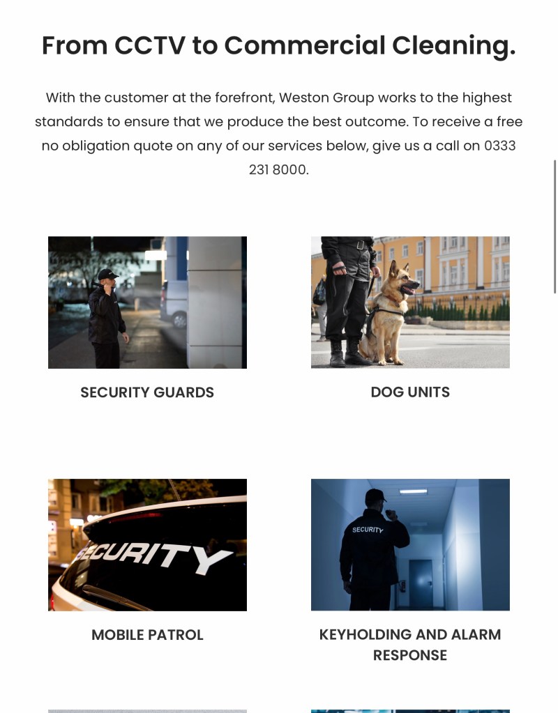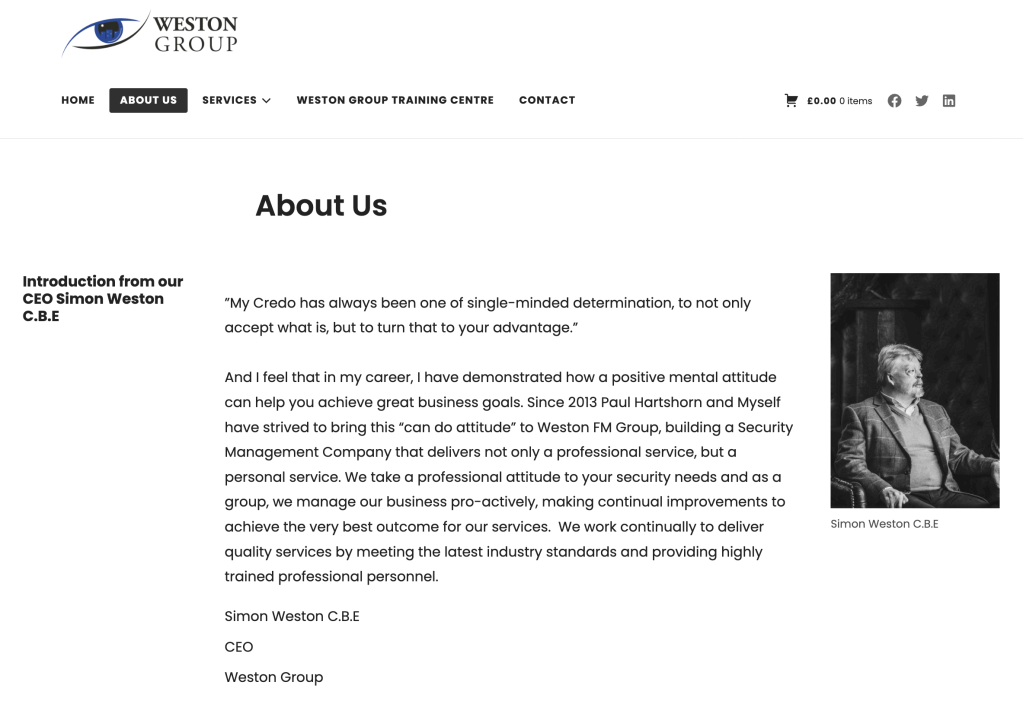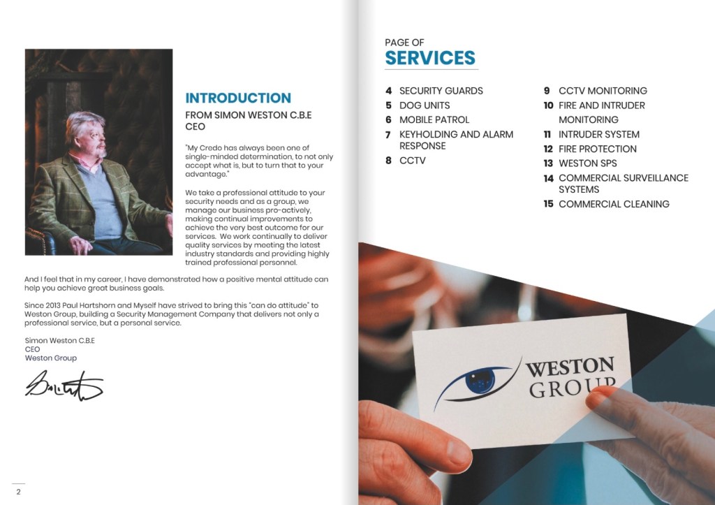 Weston FM Group were in need of a new website and promotional brochures to promote their new services and new office. Weston FM Group is one of the UK’s most successful Facilities Management companies. From Security Guards to Commercial Cleaning, Weston FM Group’s directors Simon Weston C.B.E and Paul Hartshorn ensure all of your business needs are taken care of.